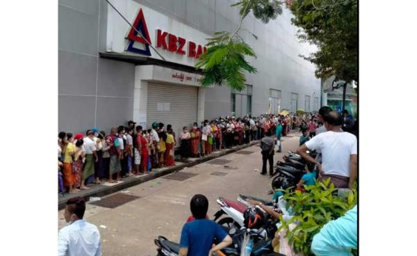 မော်လမြိုင်မြို့ပေါ် Ocean Shopping Center ရှိ KBZ ဘဏ်၌ ယနေ့(ဧပြီ ၂၉) နေ့လည် ၁၂ နာရီဝန်းကျင်ခန့်တွင် လုံခြုံရေးယူနေသော ရဲတပ်ဖွဲ့ဝင်တစ်ဦး...