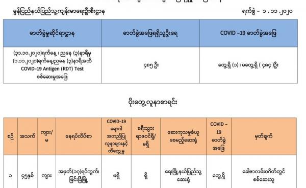 စိုင်းထွန်းစံ — မွန်ပြည်နယ်တွင် ကိုဗစ် ၁၉ ရောဂါပိုးဓာတ်ခွဲအတည်ပြုလူနာ၏ ဆယ်ပုံတစ်ပုံသည် ကလေးငယ်များဖြစ်နေကြောင်း မွန်ပြည်နယ်ပြည်သူ့ကျန်းမာရေး ဦးစီးဌာန...