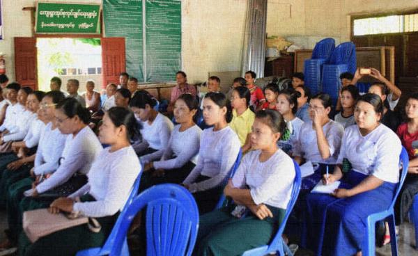 ရေးမြို့နယ်၊ အစင်စံပြကျေးရွာ ဓမင်းကုန်းရပ် မဲရုံအမှတ် (၆) ရှိ ပြည်ထောင်စုကြံ့ခိုင်ရေးနှင့်ဖွံ့ဖြိုးရေးပါတီမှ မဲရုံကိုယ်စားလှယ်တစ်ဦးထံမှ UEC...