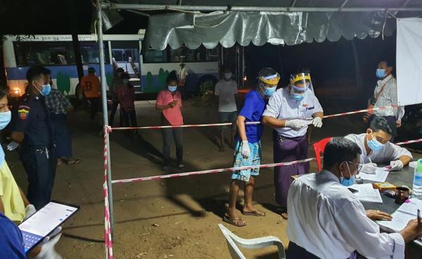 Covid-19 ရောဂါ ကာကွယ်ထိန်းချုပ်ကုသရေး ဆောင်ရွက်လျက်ရှိရာ ထိုင်းပြန် မြန်မာရွှေ့ပြောင်းအလုပ်သမားများကို ထိုင်း-မြန်မာနယ်စပ် ဘုရားသုံးဆူရှိ...