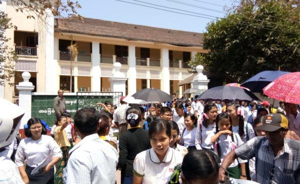 ယနေ့ မတ်လ (၈) ရက်၌ မြန်မာတစ်နိုင်ငံလုံးတက္ကသိုလ်ဝင်စာမေးပွဲ ပထမရက် စာမေးပွဲဝင်ရောက်ဖြေဆိုခဲ့ကြသည့် မော်လမြိုင်မြို့ရှိ ကျောင်းသား/သူများက...