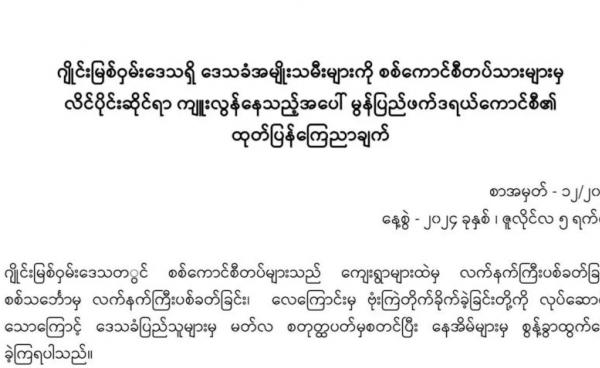 မွန်ပြည်နယ်၊ ချောင်းဆုံမြို့နယ်တွင် စစ်ကောင်စီက အကောင်အထည်ဖော်ရန် စီစဉ်နေသည့် ကျောက်မီးသွေးစက်ရုံစီမံကိန်းကို လက်မခံနိုင်သော်လည်း ဆန့်ကျင်ကန့်ကွက်ရန်...