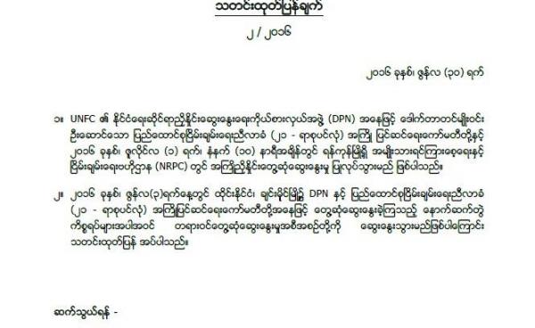 ညီညွတ်သောတိုင်းရင်းသားလူမျိုးများဖယ်ဒရယ်ကောင်စီ UNFC ၏ နိုင်ငံရေးဆိုင်ရာ ညှိနှိုင်းဆွေးနွေးရေးကိုယ်စားလှယ် Delegation for Political Negotiation-DPN...