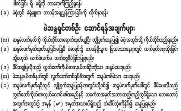 ၂၀၁၅ အထွေထွေ ရွေးကောက်ပွဲတွင် ဝင်ရောက်ယှဉ်ပြိုင်မည် နိုင်ငံရေးပါတီများအနေဖြင့် ရွေးကောက်ပွဲ ရလာဒ်ကို လက်ခံရန်လိုအပ်ပြီး ရလာဒ်အား မကျေနပ်၍ ဆူပူမှုများ...