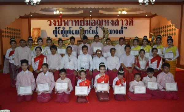 ထိုင်းနိုင်ငံ၊ ကန်ချနပူရီခရိုင်၊ စံခလပူရီမြို့နယ်၊ ဝင်းကရွာအခြေစိုက် မွန်ယဉ်ကျေးမှုဗိမာန် ရိုးရာဂီတသင်တန်းဆင်းပွဲ၌ မွန်ပြည်သစ်ပါတီ ဒုဥက္ကဌနိုင်ဟံသာက...