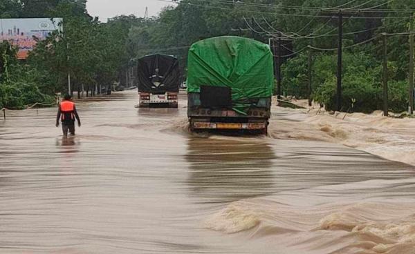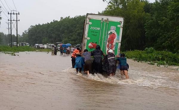 မွန်ပြည်နယ်၊ ဘီးလင်းမြို့နယ် ရွှေရောင်ပြနှင့် ကျုံအိတ်တံတားကြား ရန်ကုန်-မော်လမြိုင် ကားလမ်းပေါ် ရေ ကျော်နေပြီး ရေစီးသန်နေတဲ့အတွက် ကားအစီးအရ...