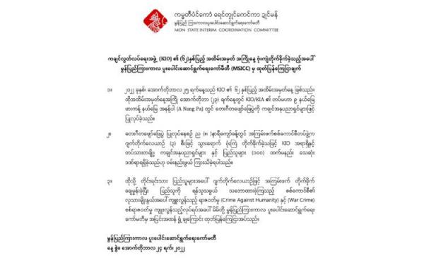 ကရင်အမျိုးသားအစည်းအရုံး (KNU) တပ်မဟာ ၁ နယ်မြေအတွင်း ရောက်ရှိနေသည့် တော်လှန်ရေးအဖွဲ့အစည်းများ လိုက်နာရန် စည်းကမ်းချက် ထုတ်ပြန်ခြင်းသည် တစ်ဖက်နှင့်...