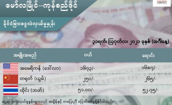 ရွှေစျေးနှင့် ဒေါ်လာငွေလဲနှုန်း သိသိသာသာ အပြောင်းအလဲမရှိသေးသော်လည်း ထိုင်းမြန်မာငွေလဲနှုန်းတွင် ယနေ့ပေါက်စျေးအရ ထိုင်း ၁ ဘတ်လျင် မြန်မာကျပ်ငွေအဝယ် ၅၁...