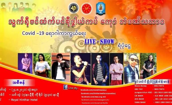 မွန်ဒေသများအတွင်း ကိုဗစ်ရောဂါကာကွယ်ကုသရေးနှင့် သဘာဝဘေးဒဏ်အန္တရာယ်အတွက် ကူညီထောက်ပေးရေး ရံပုံငွေအလှူခံပွဲတစ်ရပ်ကို မွန်အဆိုတော်များက...