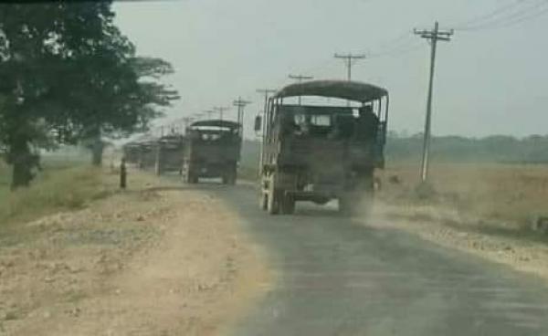 တနိုင်းမှ ခြေကျင်ဖြင့်ဆင်းလာသော စစ်ကောင်စီအင်အား ၁၃၀ ခန့်ပါသော စစ်ကြောင်းကို ယနေ့နံနက် ၁၀ နာရီခွဲခန့် လီဒိုလမ်းမပေါ် ဝါရာဇွပ်ကျေးရွာနှင့်...