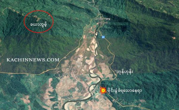 ဖားကန့်သွားလမ်း ကပ်မှော်ကျေးရွာနှင့် ၂ မိုင်ခန့်ဝေးသည့် တံတားညီနောင်အနီးတွင်ရှိသော မကော့လယန်ခေါ် (Makaw La Yang) နေရာတွင် အာဏာသိမ်းစစ်တပ်၏...