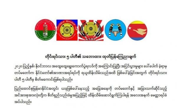 မြန်မာစစ်တပ်အာဏာသိမ်းမှုကြောင့် လက်ရှိဖြစ်ပေါ်နေသည့် နိုင်ငံရေးအခင်းအကျင်းအား နိုင်ငံရေးနည်းလမ်းဖြင့်ညှိနှိုင်းဖြေရှင်းရန် တိုင်းရင်းသားပါတီ (၅)...