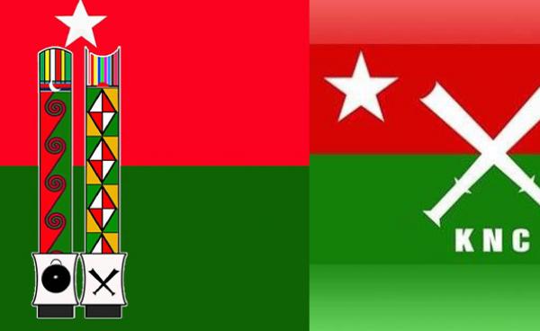 ဗန်းမော်ခရိုင် မိုးမောက်မြို့နယ်ရှိ ကချင်ပြည်နယ်ပြည်သူ့ပါတီ KSPP နှင့် ကချင်အမျိုးသားကွန်ကရက်ပါတီ KNC တို့၏ ပါတီ ဆိုင်းဘုတ်များ အောက်တိုဘာ ၁၅ ရက်နေ့က...