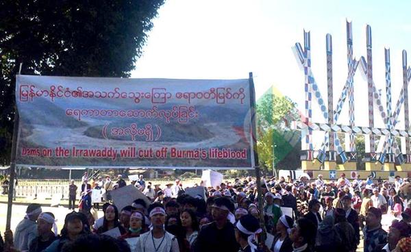 ကချင်ပြည်နယ် မြစ်ကြီးနားမြို့ စီတာပူမနောကွင်းတွင် ဖေဖော်ဝါရီလ ၇ ရက်မနက် ၉နာရီ ၌ မြစ်ဆုံစီမံကိန်း ရာသက်ပန်ရပ်ဆိုင်းရန် ပြည်သူလူထု...