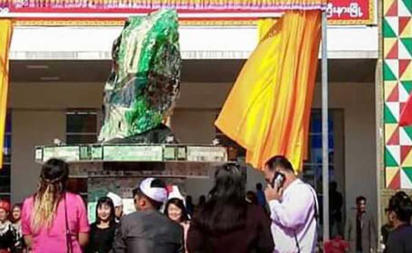 ၇၁ နှစ်ပြည့် ကချင်ပြည်နယ်နေ့ အထိမ်းအမှတ် လက်ဆောင်အဖြစ် အဖိုးတန် ဖားကန့် ကျောက်စိမ်းတုံးကြီး တစ်လုံးကို ကချင် ကျောက်စိမ်း လုပ်ငန်းရှင် ဦး Banlun...