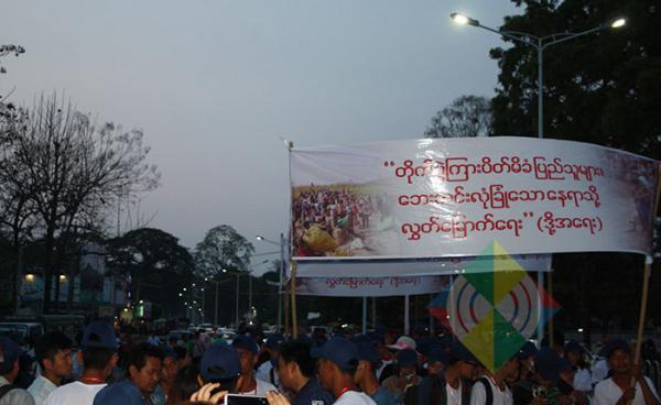 တိုက်ပွဲအတွင်း မြန်မာအစိုးရတပ်၏ ပိတ်ပင်တားဆီး ခံနေရသော ကချင် စစ်ပြေးပြည်သူများ လွတ်မြောက်ရေး အတွက် ဆန္ဒပြ တောင်းဆိုသော မြစ်ကြီးနား ကချင်လူငယ်...