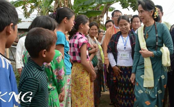 ကချင်ပြည်နယ် မြစ်ကြီးနားမြို့ကို ရောက်ရှိနေသည့် နိုင်ငံတော်၏ အတိုင်ပင်ခံ ပုဂ္ဂိုလ် ဒေါ် အောင်ဆန်းစုကြည် က တစ်နိုင်ငံလုံး အပစ်ရပ်လက်မှတ် NCA...