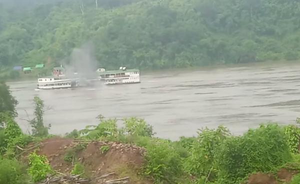 ကချင်ပြည်နယ် ရွှေကူမြို့နယ်မှာ ဆိုက်ကပ်ထားတဲ့ စစ်သင်္ဘော ဗန်းမော်ဘက်ကို ဆန်တက်လာချိန် ကာကွယ်ရေးတပ်ဖွဲ့ဝင်တွေရဲ့ ပစ်ခတ်တိုက်ခိုက်မှုကြောင့်...