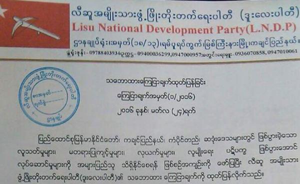 လီဆူ အမျိုးသားဖွံ့ဖြိုးတိုးတက်ရေး ပါတီ (ဒူးလေးပါတီ) ၏ မတ် ၂၄ ရက်စွဲဖြင့် သဘောထား ထုတ်ပြန်ချက်ပါ ကချင် လွတ်လပ်ရေး တပ်မတော် KIA ၏ လီဆူ လူမျိုးများအပေါ်...
