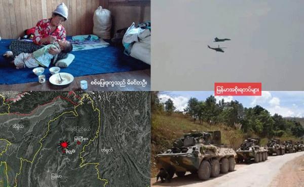 ကချင်ပြည်နယ်၊ မိုးညှင်းမြို့ပြင် Loi Yang Bum တောင်ခြေတွင် မြန်မာအစိုးရတပ်နှင့် ကချင်လွတ်မြောက်ရေးတပ်မတော် KIA တပ်အကြား ယနေ့ နံနက်ပိုင်း ၈နာရီကျော်မှ...