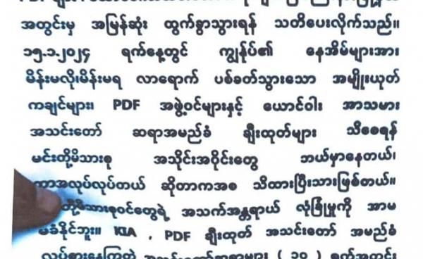ကချင်ပြည်နယ် မြစ်ကြီးနားမြို့ပေါ် ရပ်ကွက်တစ်ချို့ဈေးတွေမှာ ဦးရွှေမင်းပြည်သူ့စစ်အဖွဲ့အမည်နဲ့ ဗိုလ်ချုပ်ဂွန်မော်အပါအဝင် KIA၊ PDF များကို အသက်အန္တရယ်အထိ...
