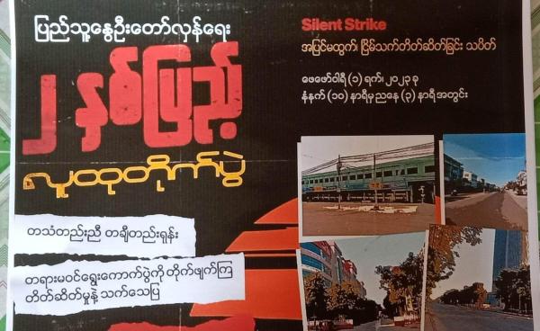 စစ်တပ်အာဏာသိမ်းမှုကို ဆန့်ကျင်တဲ့ နွေဦးတော်လှန်ရေး ၂ နှစ်ပြည့်၊ ၂၀၂၃ ခုနှစ် ဖေဖော်ဝါရီလ ၁ ရက်နေ့မှာတော့ တစ်နိုင်ငံလုံး တိတ်ဆိတ် ငြိမ်သက်ခြင်းသပိတ်...