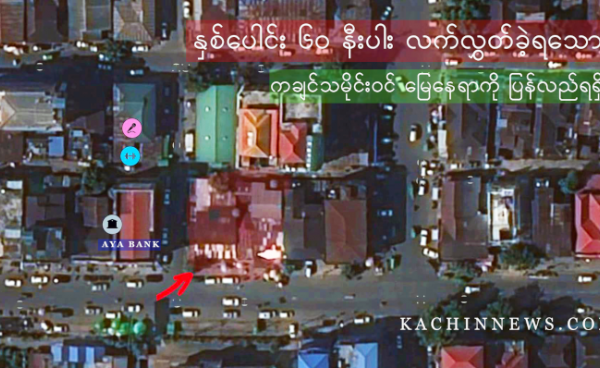 မြစ်ကြီးနား မြို့မ ရပ်ကွက် ဧရာဘဏ်အနီးရှိ နှစ်ပေါင်း ၆၀ နီးပါး လက်လွတ်ခဲ့ရသော ကချင်တစ်မျိုးသားလုံးနှင့် သက်ဆိုင်သော သမိုင်းဝင်မြေနေရာ တစ်ခုကို...