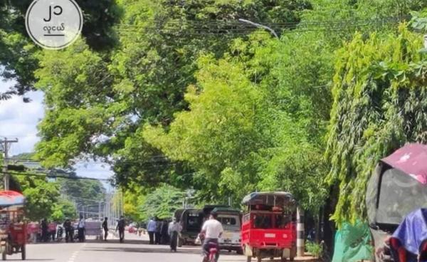 ကချင်ပြည်နယ် မြစ်ကြီးနားမြို့ အေးမြသာယာရပ်ကွက်ရှိ စစ်ကောင်စီတပ်၏ အထူးစုံစမ်းစစ်ဆေးရေးဌာန (စစစ) ရုံးသို့ ဝင်ရောက်လာသည့် စစ်ကားတစ်စီး...