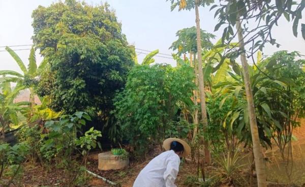 အနီရောင် လွယ်အိတ်လေးထဲမှာ ကျောင်းဖတ်စာအုပ်လေးတွေ ထည့်လွယ်ထားပြီး လက်ထဲမှာ ဆေးဝါးတွေထည့်ထားတဲ့ ပလပ်စတစ်ပုံးကိုကိုင်ကာ ခူးကျားရယ်တယောက်...