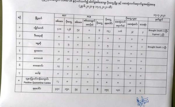 ကရင်နီပြည်၊ လွိုင်ကော်မြို့မှာ ၃ နှစ်သားအရွယ် ကလေးငယ်အပါအဝင် ဇူလိုင်လ ၉ ရက်နေ့ ညပိုင်းအထိ ကိုဗစ်ပိုးတွေ့ရှိသူ ၁၅ ဦးထပ်တိုးပြီး စုစုပေါင်း ၄၅...
