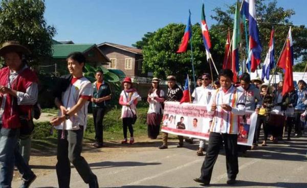 ငြိမ်းစုစီ ဥပဒေဖြင့် တရားစွဲဆိုခံရသူများကို ဇန််နဝါရီလ ၅ ရက်နေ့က လွိုင်ကော်တရားရုံးသို့ စီတန်းလှည့်လည်ကာ လိုက်ပါပို့ဆောင်ခဲ့ကြရာတွင် ဦးဆောင်သူခဲ့သူ ၃...