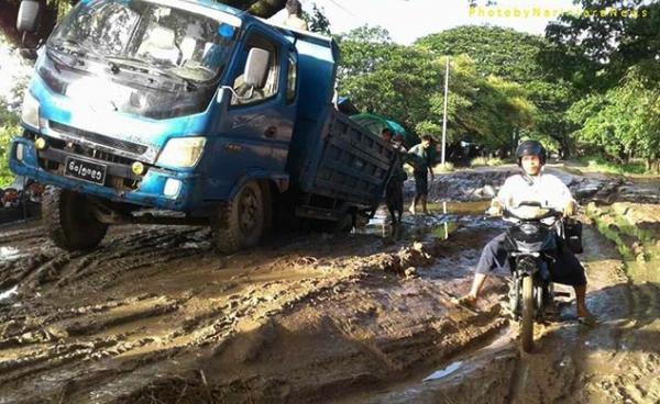 ရခိုင်ပြည်နယ် မြောက်မြို့နယ်တွင် မြောက်ဦး-ဆင်အိုးလမ်းနှင့် မြောက်ဦး-ပိုးဖြူကျွန်းလမ်းတို့ကို ဆက်သွယ်ထားသည် ဘုရားအုပ်အနီးလမ်းပိုင်းမှာ သွားလာ၍...