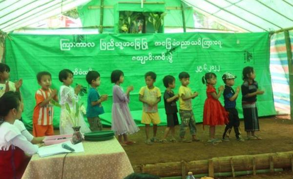 ဒီးမော့ဆို အနောက်ဘက်ခြမ်း စစ်ရှောင်စခန်းတစ်ခုမှာ မူလတန်းကလေးတွေကို ၆ လသာ ပညာသင်ကြားမှု ပြုလုပ်ပြီးတဲ့နောက် ကျောင်းသူ/သား ၃၉ ယောက် အတန်းတင်လက်မှတ်...