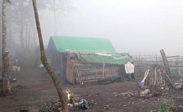 ကားလမ်းဘေးက ၀ါးကျွတ်အမိုး၊ သွပ်မိုးအဟောင်း၊ မိုးကာအဟောင်းတွေနဲ့ ကာရံထားတဲ့ တဲတစ်ခုဟာ စစ်ရှောင်အမျိုးသမီးတစ်ဦးရဲ့ ယာယီအိမ်ဖြစ်သလို...