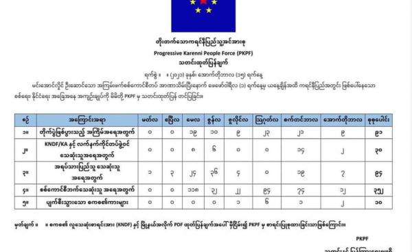 ကရင်နီပြည်နယ်မှာ ၆ လအတွင်း စစ်ကောင်စီနဲ့ KNDF၊ KA၊ လက်နက်ကိုင်တပ်ဖွဲ့ဝင်တို့ တိုက်ပွဲပေါင်း ၉၁ ကြိမ်ဖြစ်ပွားခဲ့တယ်လို့ တိုးတက်သော...