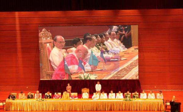 ရန်ကုန်မြို့၊ အင်းစိန်မြို့နယ်၊ မင်းဓမ္မလမ်းရှိ မြန်မာကွန်ဗန်းရှင်းစင်တာ (Myanmar Convention Center-MCC) ခန်းမရှေ့မုဒ် ဦးဝတွင် အရောင်စုံ...