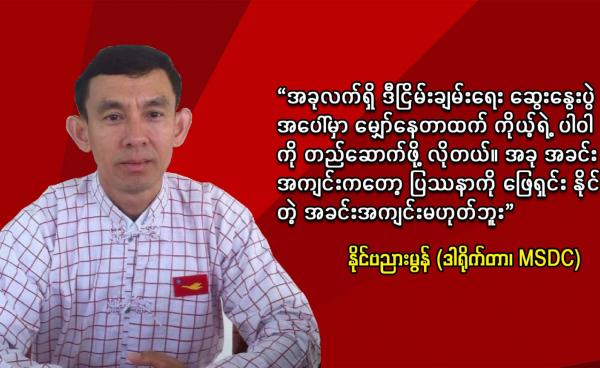 “အခုလက်ရှိ ဒီငြိမ်းချမ်းရေး ဆွေးနွေးပွဲအပေါ်မှာ မျှော်နေတာထက် ကိုယ့်ရဲ့ ပါဝါကို တည်ဆောက်ဖို့ လိုတယ်။ အခု အခင်းအကျင်းကတော့ ပြဿနာကို ဖြေရှင်း နိုင်တဲ့...