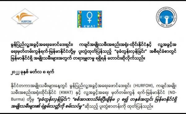 မြန်မာနိုင်ငံရှိ အမျိုးသမီးများအတွက် တရားမျှတမှုရရှိရန် မတ်လ ၈ရက်၊ ယမန်နေ့က ကျရောက်ခဲ့သည့် အပြည်ပြည် ဆိုင်ရာ အမျိုးသမီးများနေ့တွင် အမျိုးသမီးနှင့်...