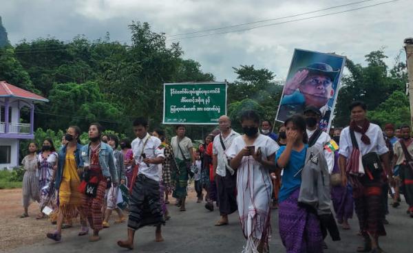 လူအင်အားထောင်နှင့်ချီသော စစ်ကောင်စီ (မြန်မာ့တပ်မတော်) ထောက်ခံသည့် လမ်းလျှောက်ချီတက်ပွဲကို ကရင်ပြည်နယ်၊ ဖားအံမြို့နယ်တောင်ဘက် ဇွဲကပင်တောင်ခြေရှိ...