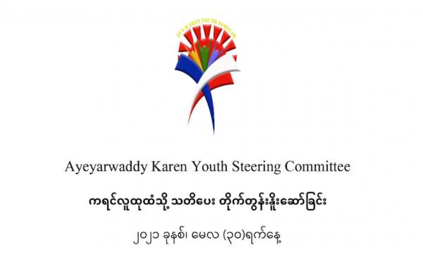 ကရင်စာပေနှင့် ယဉ်ကျေးမှုကော်မတီ/အသင်းအဖွဲ့များအပြင် ကရင်လူထုများအနေဖြင့် စစ်ကောင်စီနှင့် ပူးပေါင်းခြင်းမပြုရန် ဧရာဝတီကရင်လူငယ် ဦးဆောင်ကော်မတီက...