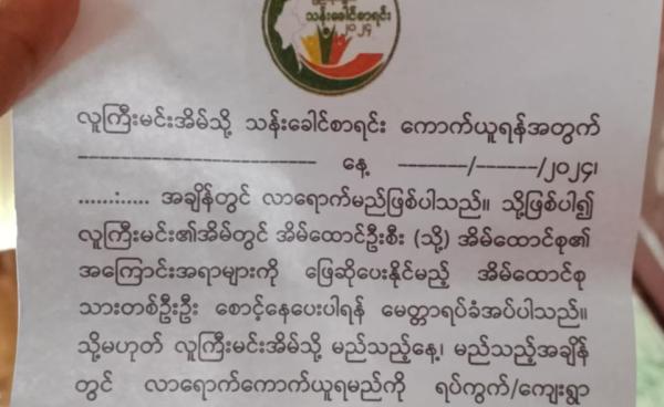 ကရင်ပြည်နယ်အတွင်း အပစ်ရပ်လက်နက်ကိုင်နယ်မြေကျေးရွာများတွင် စစ်ကောင်စီက နည်းလမ်း မျိုးစုံကြိုးပမ်းပြီး သန်းခေါင်စာရင်းဆက်လက်ကောက်ယူနေကြောင်း...