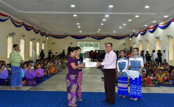 ကရင်ပြည်နယ်၊ လှိုင်းဘွဲမြို့နယ်ရှိ ရေဘေးသင့်ပြည်သူများအတွက် စစ်ကောင်စီ၏ ပြည်နယ်ဝန်ကြီးချုပ်မှ လာရောက်ထောက်ပံ့သွားသည့် စားသောက်ကုန်များအား...