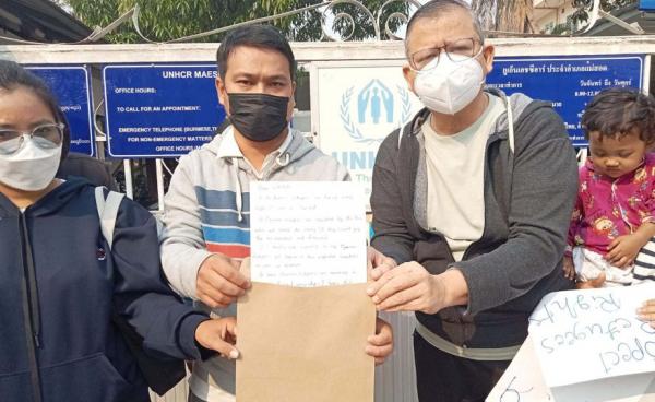 ထိုင်း-မြန်မာနယ်စပ်၊ မဲဆောက်မြို့အခြေစိုက် ကုလသမဂ္ဂဒုက္ခသည်များဆိုင်ရာ မဟာမင်းကြီးရုံး(UNHCR)ရုံး ရှေ့တွင် ရှစ်ကြိမ်မြောက် အသံတိတ်ဆန္ဒပြပွဲကို Mae...