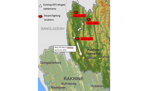 ချင်းပြည်နယ်၊ ပလက်ဝမြို့နယ်အတွင်း မြန်မာတပ်မတော်နှင့် ရက္ခိုင့်လက်နက်ကိုင်တပ်ဖွဲ့(AA) တို့အကြား ဖြစ်ပွားနေ သော တိုက်ပွဲများကို NCA(...