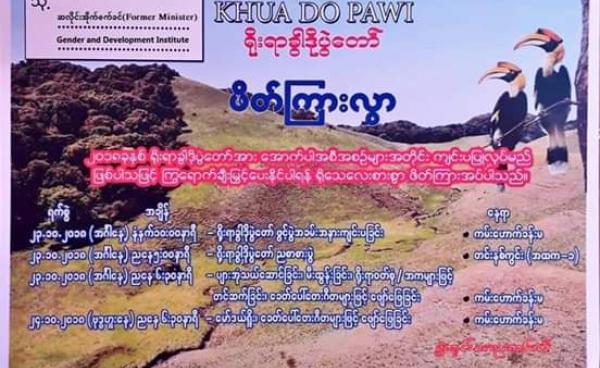 ချင်းရိုးရာခွါဒိုပွဲတော်ကြီးကို တီးတိန်မြို့၊ ကမ်းဟောက်ခန်းမတွင် ယခုလ (၂၃-၂၄) ရက်နေ့တွင် စည်ကားသိုက်မြိုက်စွာ ကျင်းပကြမည်ဟုသိရသည်။