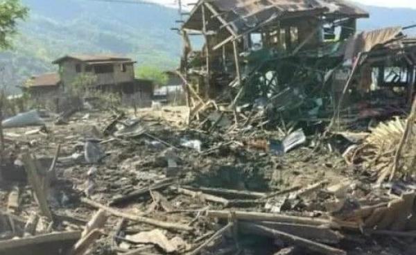 ချင်းပြည်နယ်မြောက်ပိုင်း တွန်းဇံမြို့နယ်၊ လုံတပ်ကျေးရွာကို စစ်ကောင်စီက ဗုံးကြဲတိုက်ခိုက်မှုကြောင့် ဘာသာရေး အဆောက်အဦး အပါအဝင် နေအိမ် (၇)...