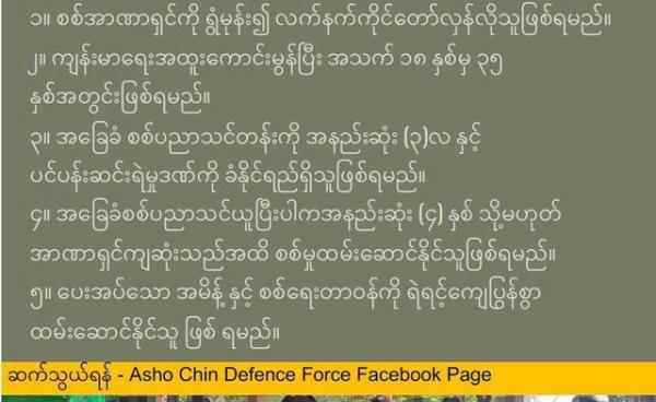 ချင်းလဲန်းဖွဲ့စည်းပုံအခြေခံဥပဒေအရ ချင်းအမျိုးသားနှင့် ချင်းလဲန်းကိုတည်ဆောက်နေသည့်အချိန်တွင် ဟန့်တားနှောင့်ယှက်သည့် လုပ်ရပ်မှန်သမျှ ပြည်သူနှင့်အတူ...