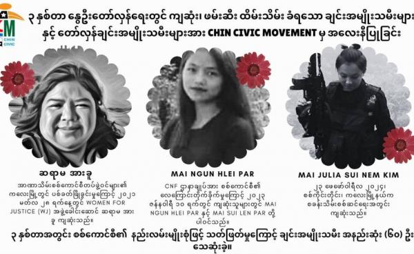 တော်လှန်ရေးမှာ ကဏ္ဍစုံမှ ပါဝင်နေသည့် ချင်းအမျိုးသမီးများ လိင်အကြမ်းဖက်မှုပေါင်းစုံကို ပိုမိုရင်ဆိုင်လာရဟုဆို အာဏာသိမ်း ၃ နှစ်တာအတွင်း စစ်ကောင်စီက...
