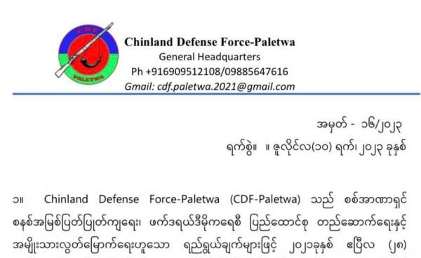 ချင်းပြည်နယ်၊ ပလက်ဝမြို့နယ်အတွင်း အသက်မပြည့်သော ကလေးငယ်များကို အတင်းအဓမ္မဖမ်းဆီးကာ တပ် ဖွဲ့ဝင်အဖြစ် လက်ခံခြင်းနှင့် သွပ်သွင်းခြင်းများ လုံးဝ...