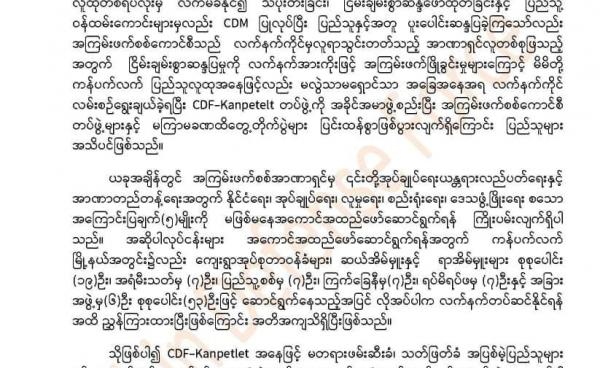 ချင်းပြည်နယ်တောင်ပိုင်း ကန်ပက်လက်မြို့နယ်တွင် စစ်ကောင်စီ၏ အုပ်ချုပ်ရေးယန္တရားလည်ပတ်ရေးနှင့် အာဏာတည်တန့်ရေးအတွက် ပူးပေါင်းဆောင်ရွက်သူများအနေဖြင့်...